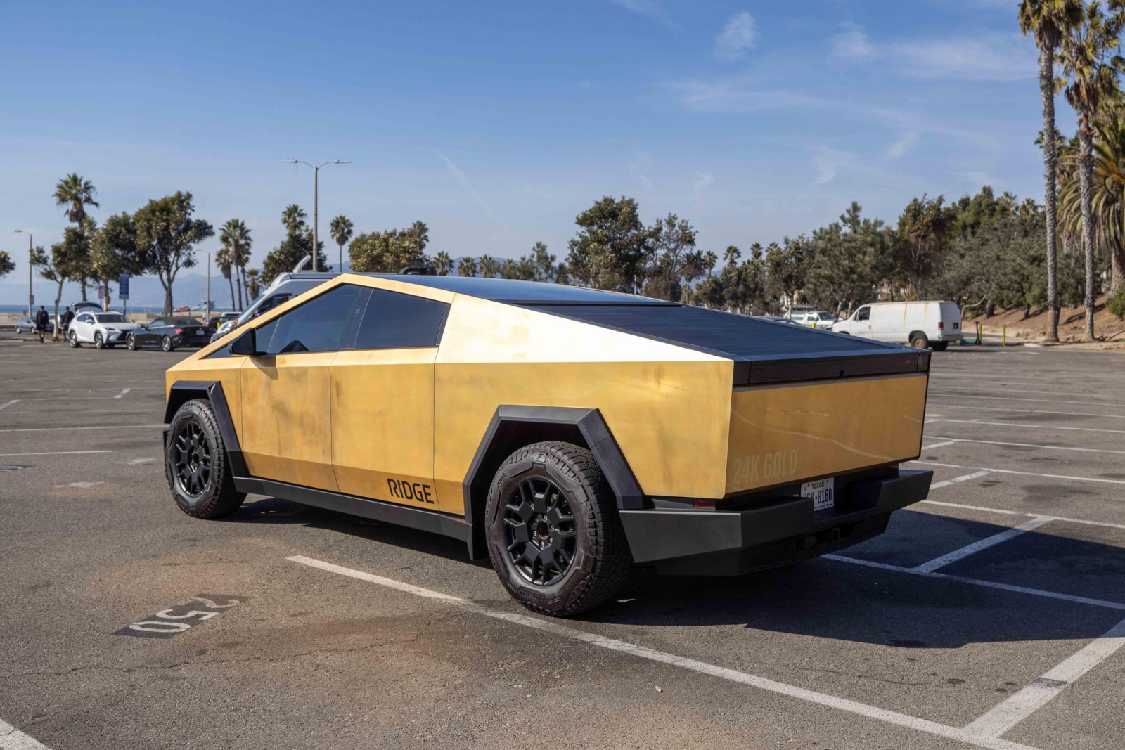 بدأت قصة هذه النسخة المميزة من تسلا سايبر تراك في فبراير 2024، حيث عملت شركة "ريدج" المتخصصة على تحويل الشاحنة من طرازها القياسي المصنوع من الفولاذ المقاوم للصدأ، إلى تحفة فنية مطلية بالذهب.