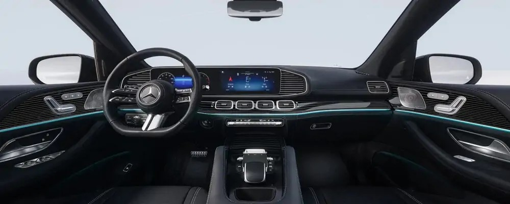 تأتي المقصورة الداخلية لـ GLE 2025 مزودة بمواد فاخرة تشمل الجلد والخشب الطبيعي، مع تصميم عصري يضمن الراحة والفخامة. تشمل أبرز المزايا: