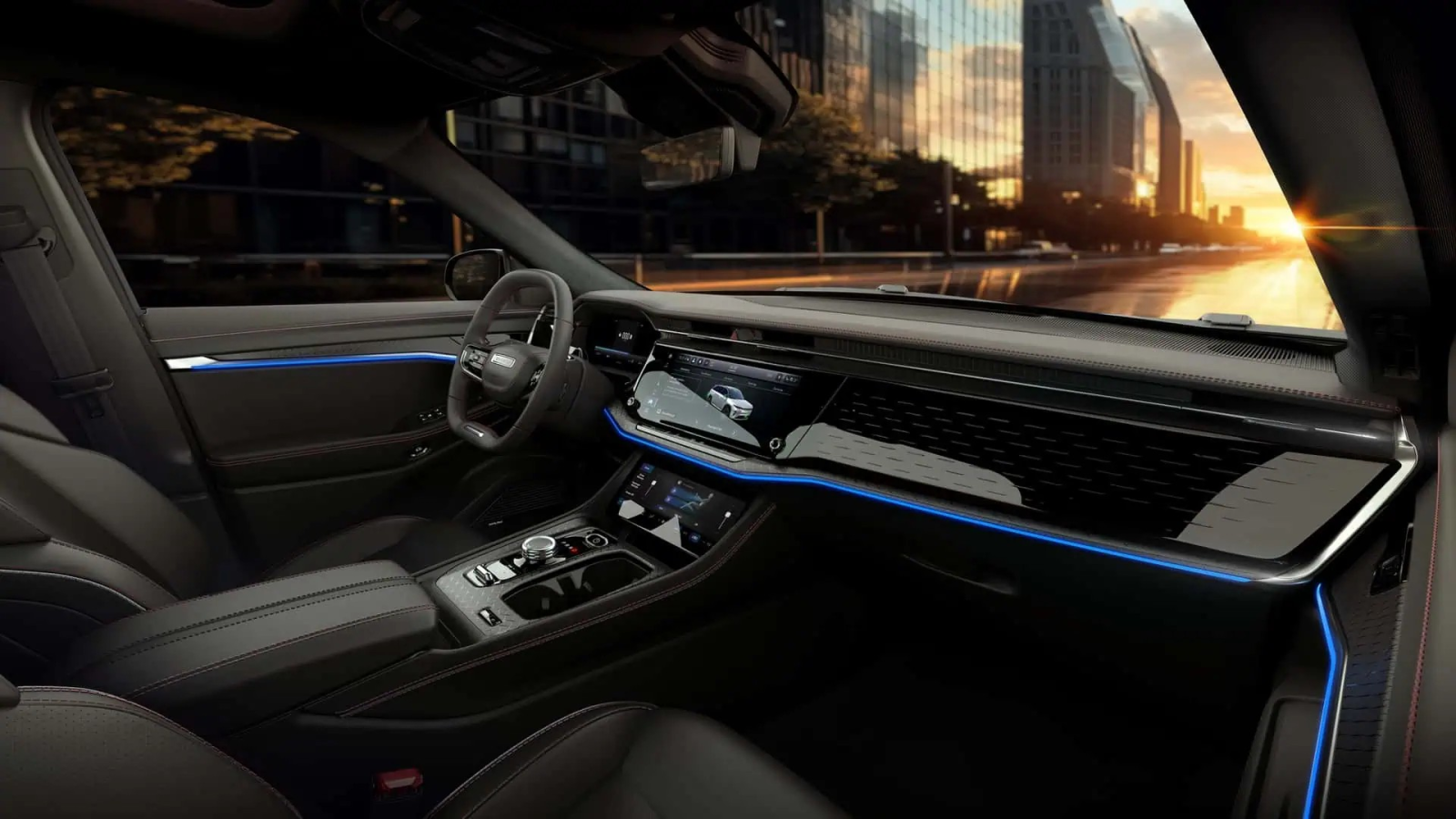 في المقصورة، تتميز السيارة بتكنولوجيا متقدمة تشمل: