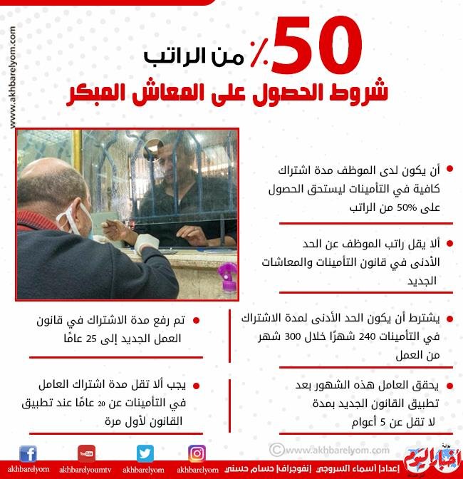 - اشترط القانون لخروج موظفي القطاع الخاص على المعاش المبكر أن يكون قد وصل لسن الـ 50 عاما.